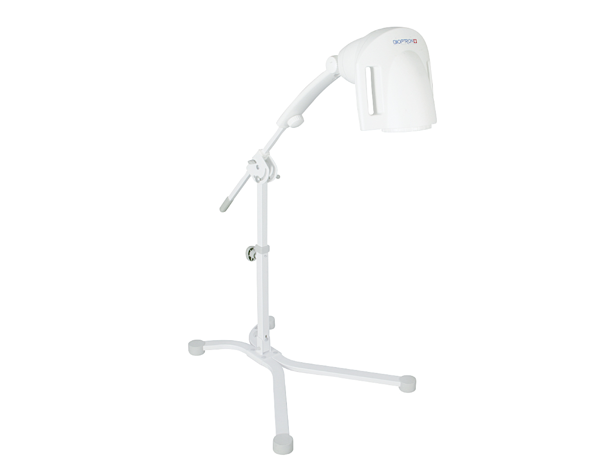 Das Gerät ist entweder mit einem praktischen Boden- bzw. mit einem ergonomischen Tisch-Stativ erhältlich und gestattet so den flexiblen Einsatz in häuslichen oder professionellen Umgebungen. Die mühelos verstellbare Höhe und Kopfneigung sowie die Möglichkeit des Drehens des Gerätekopfs um 360° ermöglichen eine bequeme Anwendung in fast jeder Position. Die Behandlungen können über eine Bedientafel mühelos bis auf einen Mindestwert von 30 Sekunden programmiert werden. Ein eingebauter Abstandshalter sorgt für den empfohlenen Abstand zur behandelten Hautoberfläche. Das Tisch-Stativ ist zusätzlich mit einer Staubhülle und einer bequemen Unterlage ausgestattet (desinfizierbar, austauschbar und waschbar).